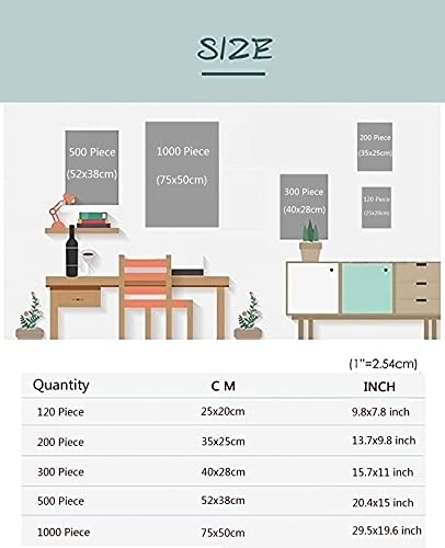 【 puzzels Grootte】:1000/500/300/200/120-delige puzzel met 29,5×19,6 inch (75x50cm), 20,4×15 inch (52x38cm), 15,7x11inch (40x28cm), 13,7×9,8 inch (35 inch) x25cm), 9,8×7,8 inch (25x20cm) maat, Geschikt voor kinderen vanaf 14 jaar. Decoupeerzaagpuzzels voor volwassenen en tieners. Inclusief poster voor hulp bij het oplossen