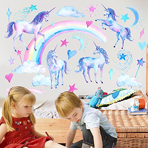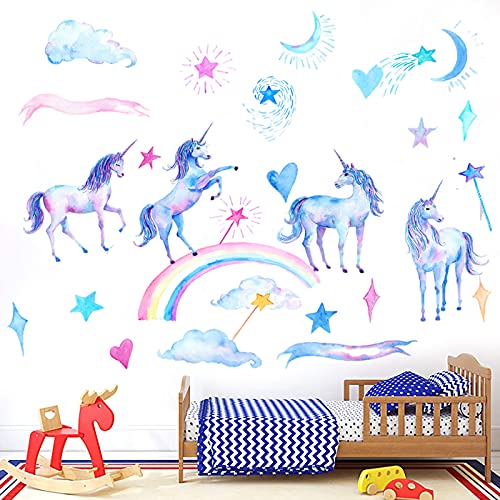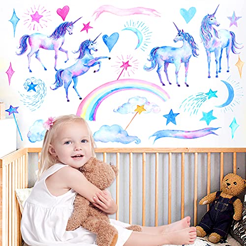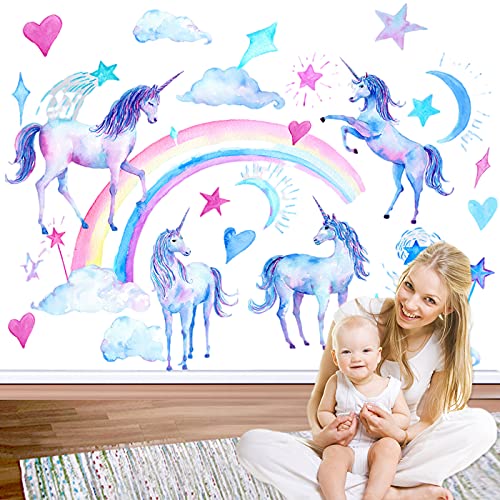 ???? 【Dromerige eenhoornpatroon】 Eenhoorn muurstickers bevatten de elementen van eenhoorns, regenbogen, sterren, wolken en andere schattige patronen in een aquarelstijl. Dit creëert een sterk gevoel van schoonheid en schoonheid in de meisjeskamer en creëert een prachtige omgeving om van te genieten.