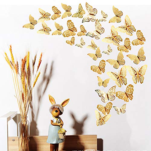 36 stuks gouden 3D vlinder muurstickers, metallic kunststicker, vlinder muurstickers voor huisdecoratie, vlinders…