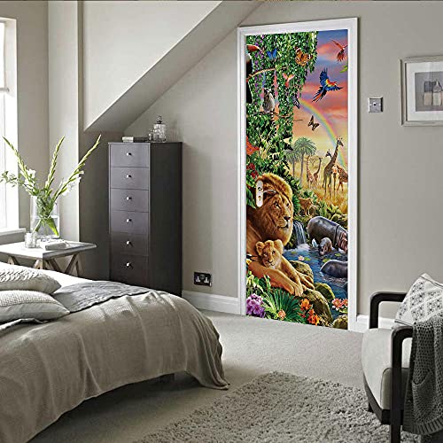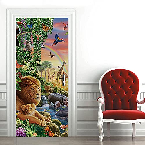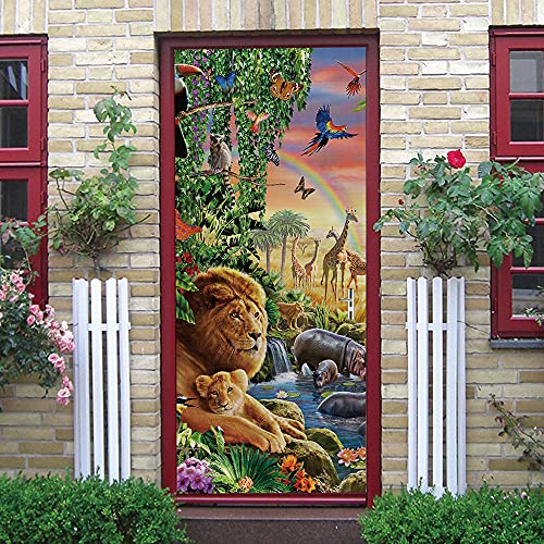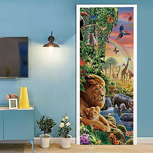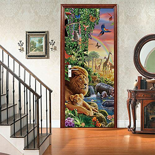 Specification: 3D deurstickers, rivier, regenboog, dieren, moderne kunst deur muurschildering sticker, waterdichte zelfklevende muur…