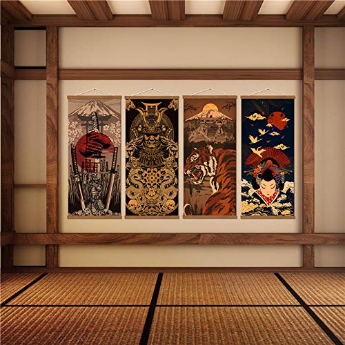 Specification: WEROUTE 4 Stuk Japanse Krijger Canvas Samurai Wall Art Print Poster Kunstwerk Home Decoraties 16 “x 35”