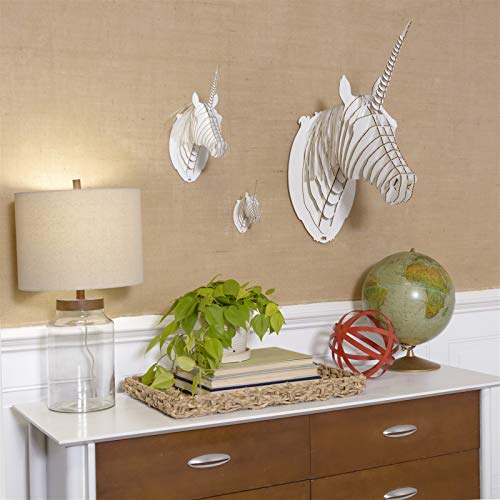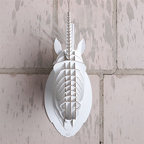 Cardboard Safari | Merlin de eenhoorn, wit | 3D dierenhoofd, decoratief gewei