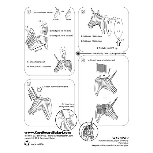 Specification: Cardboard Safari | Merlin de eenhoorn, wit | 3D dierenhoofd, decoratief gewei