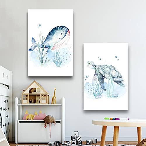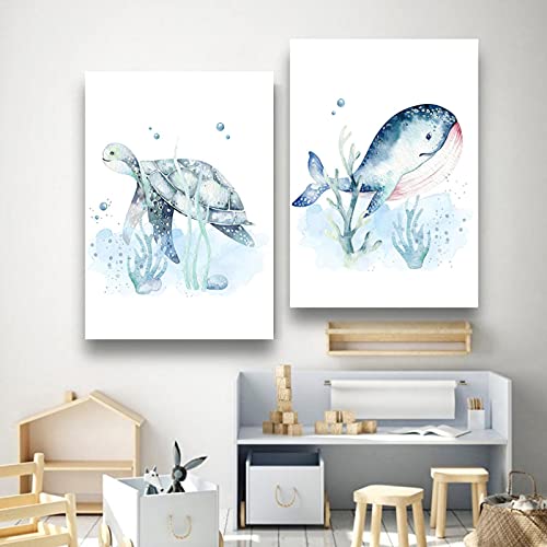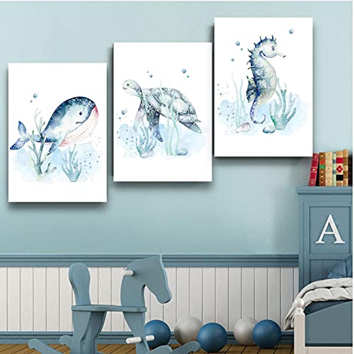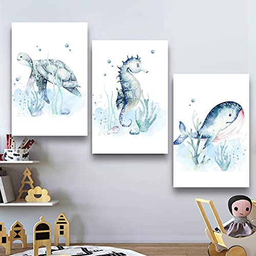 Specification: Leuke Baby Dier Foto’s Prints voor Kwekerij Muur Decor Jongens Slaapkamer Speelkamer Decoraties Aquarel Marine Leven…
