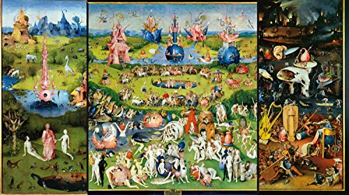 Hieronymus Bosch houdt de sterfelijke kijker een spiegel voor, waaruit het Ierse paradijs ontsprongen – door het rommelige leven op aarde een griezelig inferno ontstaat. Het schilderij op de gesloten vleugels, geheel in grijstinten gehouden, maakt de schepping, omgeven met water, na middel…