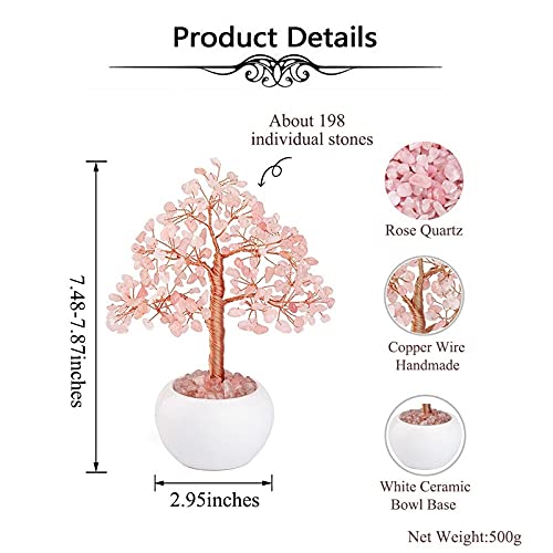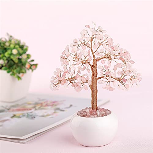 Specification: Geld Boom Ornamenten Mini Getrommeld Bonsai Boom Beeldjes Keramische Vaas Woonkamer Kantoor Home Decor, Rozenkwarts