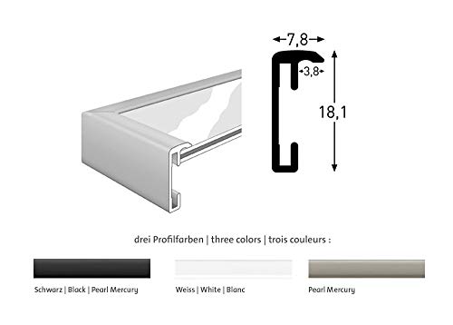 De hoogwaardige aluminium wissellijst heeft een smalle en 2 cm diepe lijst – helemaal in de trend van de tijd. De lijsten zijn zijdemat en in de hoogste kwaliteit gelakt