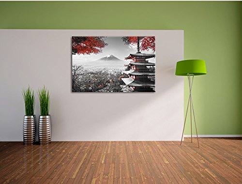 Specification: Japanse tempel in de herfst Foto Canvas | Maat: 120×80 cm | Wanddecoraties | Kunstdruk | Volledig gemonteerd