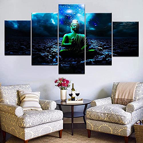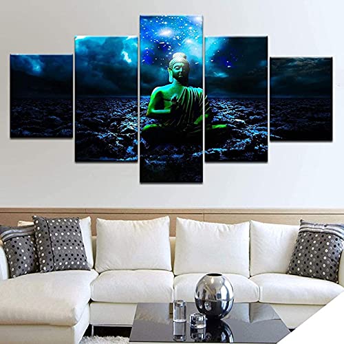 Specification: Équipement de Vie Mur Art Peinture Foto’s Impression Sur Toile Encadrée 200×100 cm 5 Panneaux Statue de Bouddha L’Image…