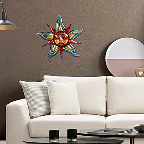 Metalen zonnewanddecoratie, gietijzeren zonnegezicht met ster muurkunst hangende decoraties, weerbestendig woondecoratie…