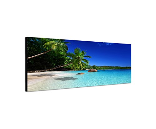 Specification: Panoramabeeld op doek en spieraam 150x50cm Seychellen strand zee palmen