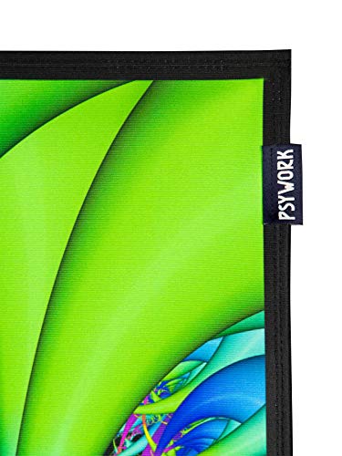 Onze stoffen poster is Made with Love , Respect and Happiness in Germany en van echt hoge kwaliteit. Beginnend bij hoogwaardige stoffen, via het creatieve design, ons uiterst uitgebreide neondrukproces en tot slot het naaien van de afzonderlijke onderdelen gebeurt alles met veel aandacht voor detail. Zo ontstaat bij ons in huis dit prachtstuk. De poster past perfect aan je muur, in elke cholloutruimte, voor het themafeest enz. Of het nu om decoreren, bewonderen of om zijn enthousiasme voor het bijzondere uitdrukking te geven, een PSYWORK stoffen poster belooft op elk moment buitengewone flair. Met je blacklight verlichting wordt de poster een echte knaller. Bij daglicht al een echte blikvanger, maar in het donker onder invloed van blacklight ontvouwt het ware effect. Natuurlijk is de poster ook super als cadeau!