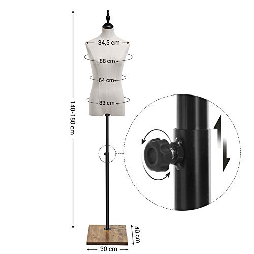 Specification: SONGMICS etalagepop, paspop vrouwelijk, vrouwelijke buste met linnen omslag, kledingstandaard, boetiek, kledingwinkel…