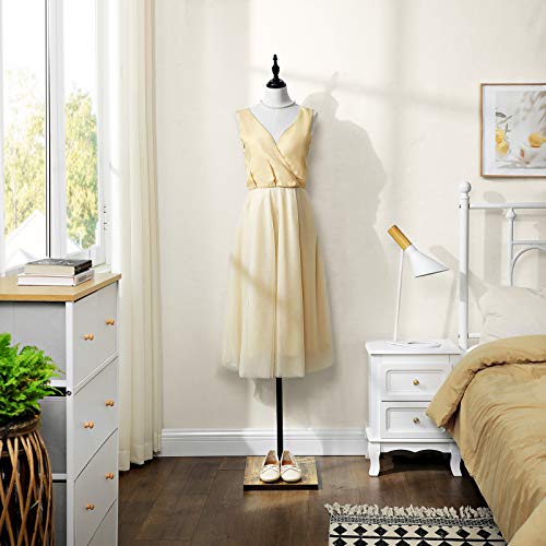 Een prachtige kledingstandaard: Of u hem nu in uw etalage of in uw naaikamer wilt plaatsen, deze buste van SONGMICS laat uw kleding altijd in het beste licht zien. Plaats bovendien een paar hoge hakken, die perfect passen bij de jurk van de pop, op de basis – perfect!