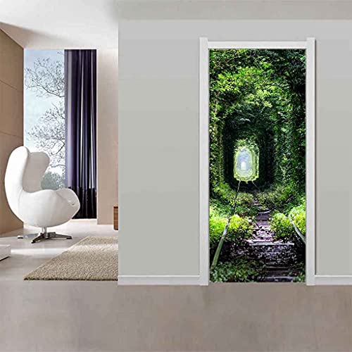 Specification: UIMXYZD 3D deurmuurschilderingen deurposter zelfklevende waterdichte deursticker vinyl groen bos trein spoor…