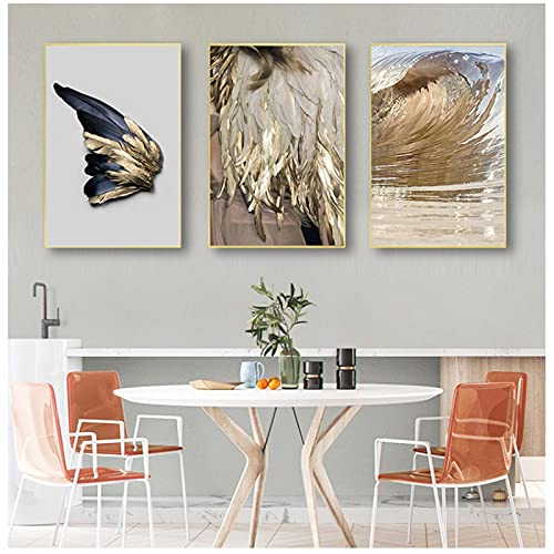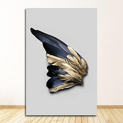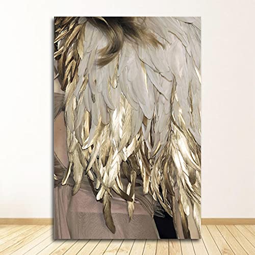 Specification: Vleugels muurkunst voor woonkamer slaapkamer gang Nordic Decor veren canvas schilderij witte poster en druk uniek gouden…